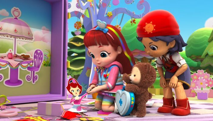 "Vikerkaare Ruby" on lugu tragist ja leidlikust väikesest tüdrukust, kes käib imeväel Vikerkaare külas, veidral maal, kus elavad tema mänguasjad. Seal kehastab Ruby nende aitamiseks erinevate ametite esindajaid.